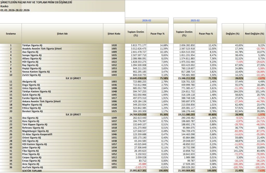 Net Konuşayım | Sigorta Sektörü Şubat 2026 Verileri Ne Söylüyor?
